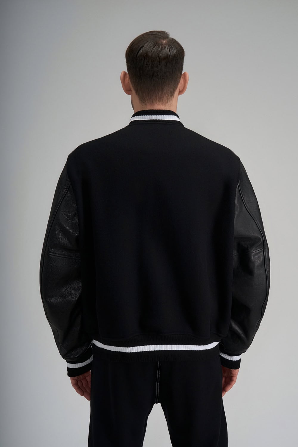 Black bomber jacket in wool and leather
