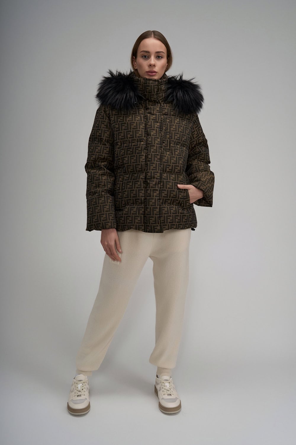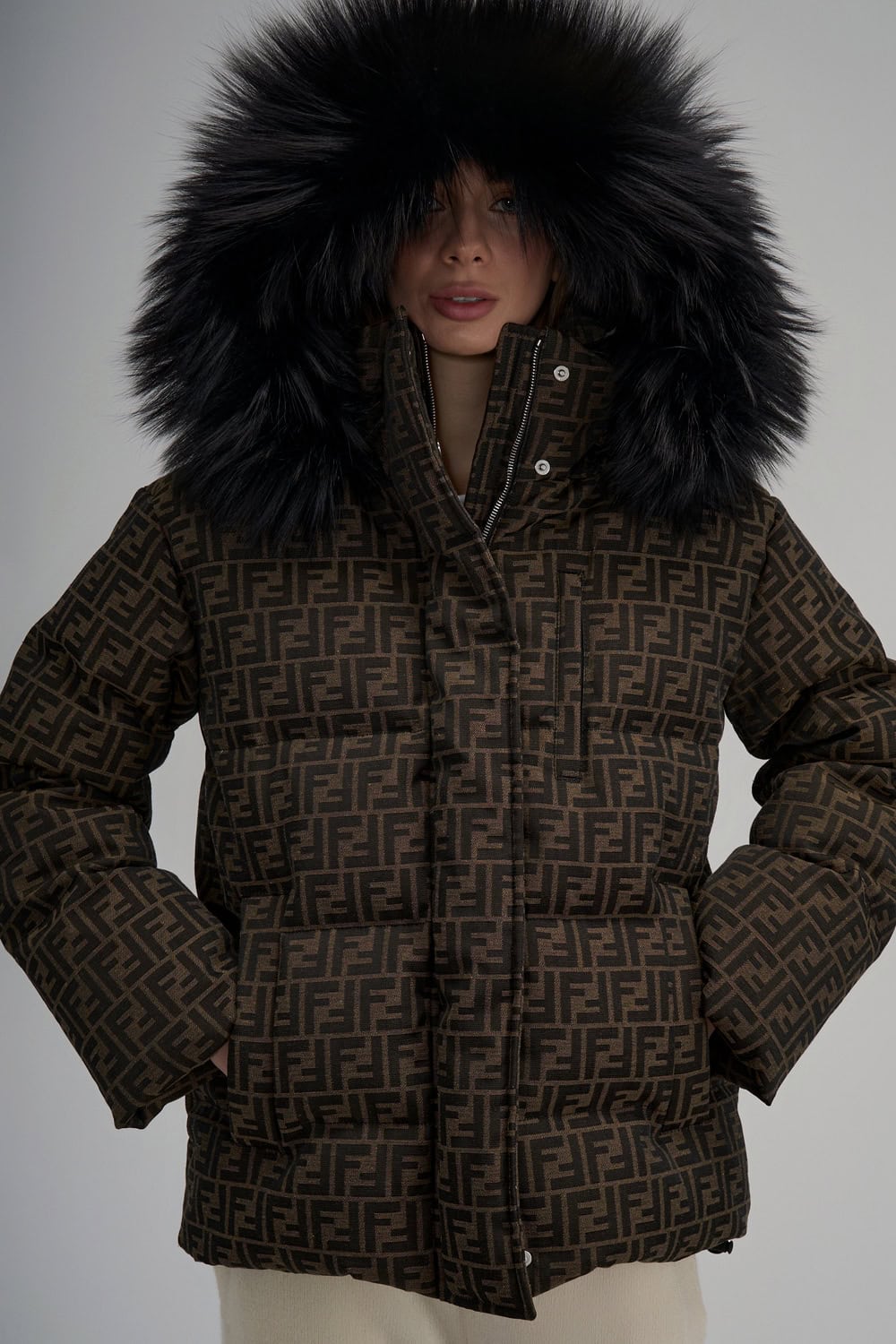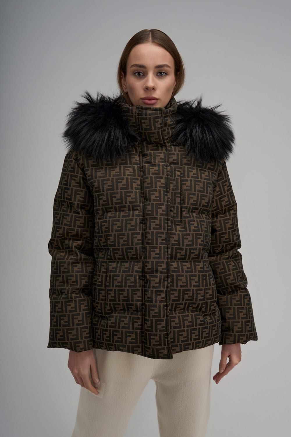 Brown FF canvas puffer jacket