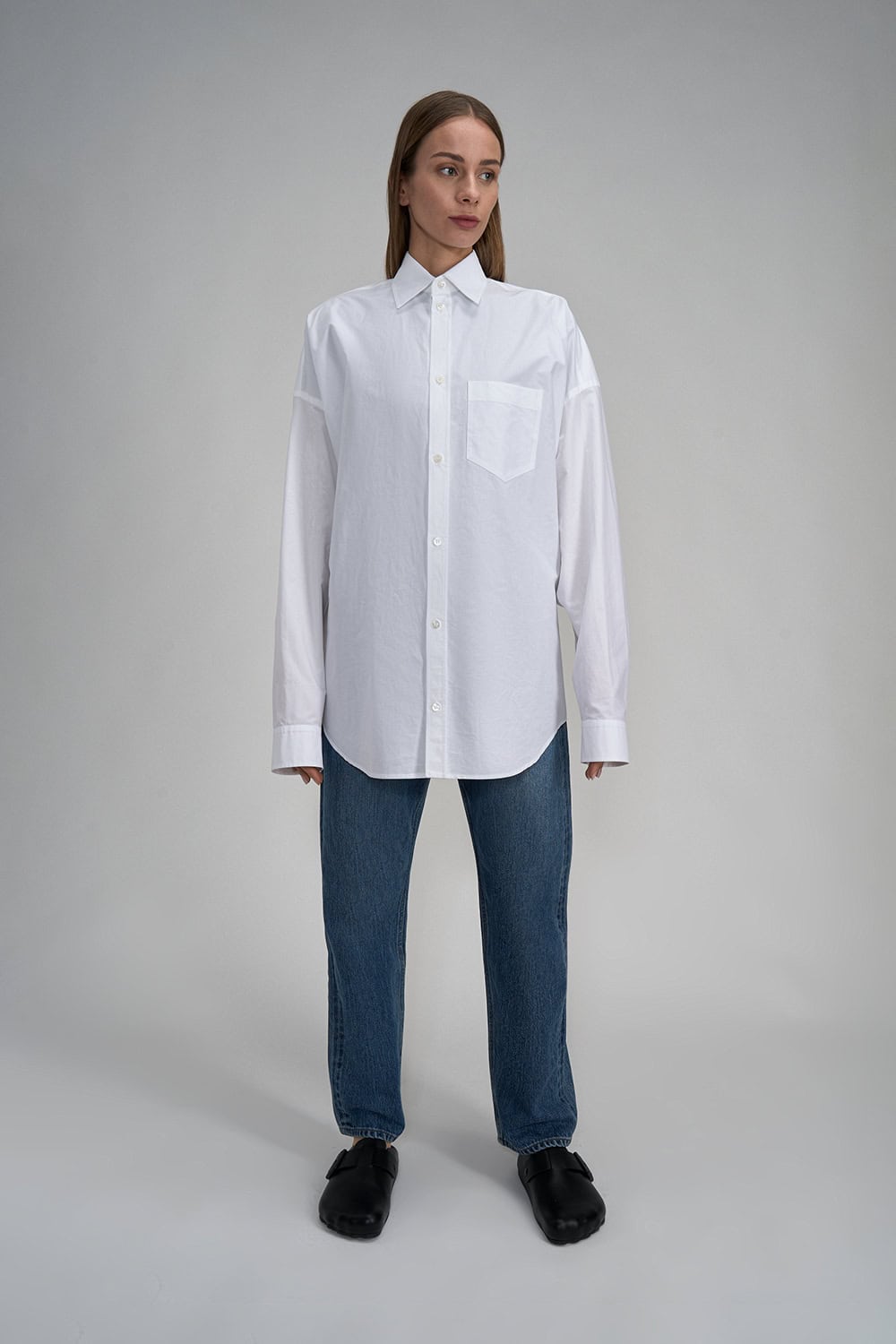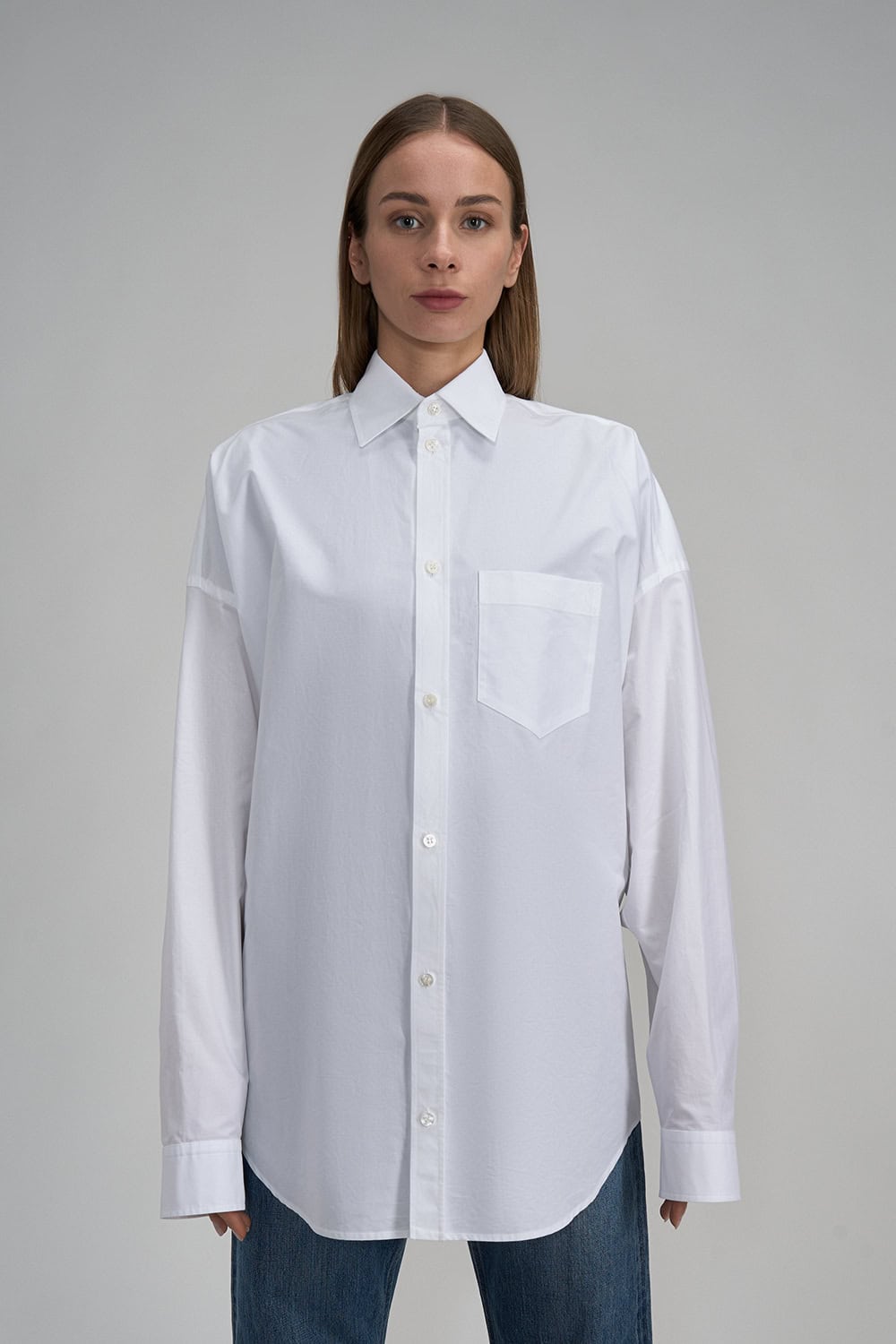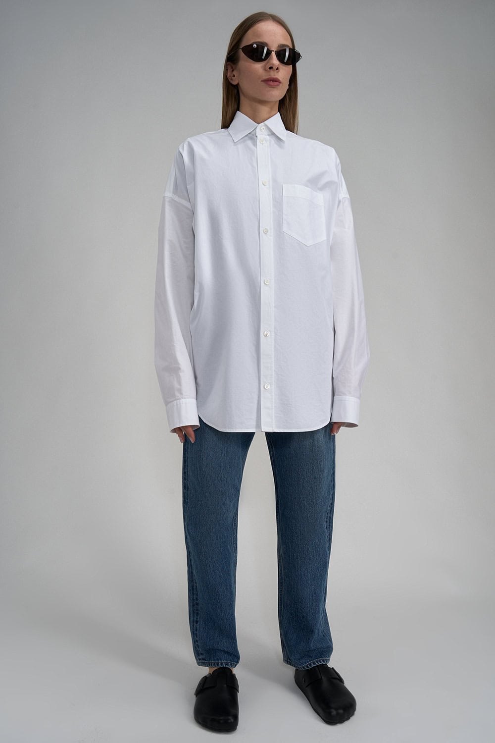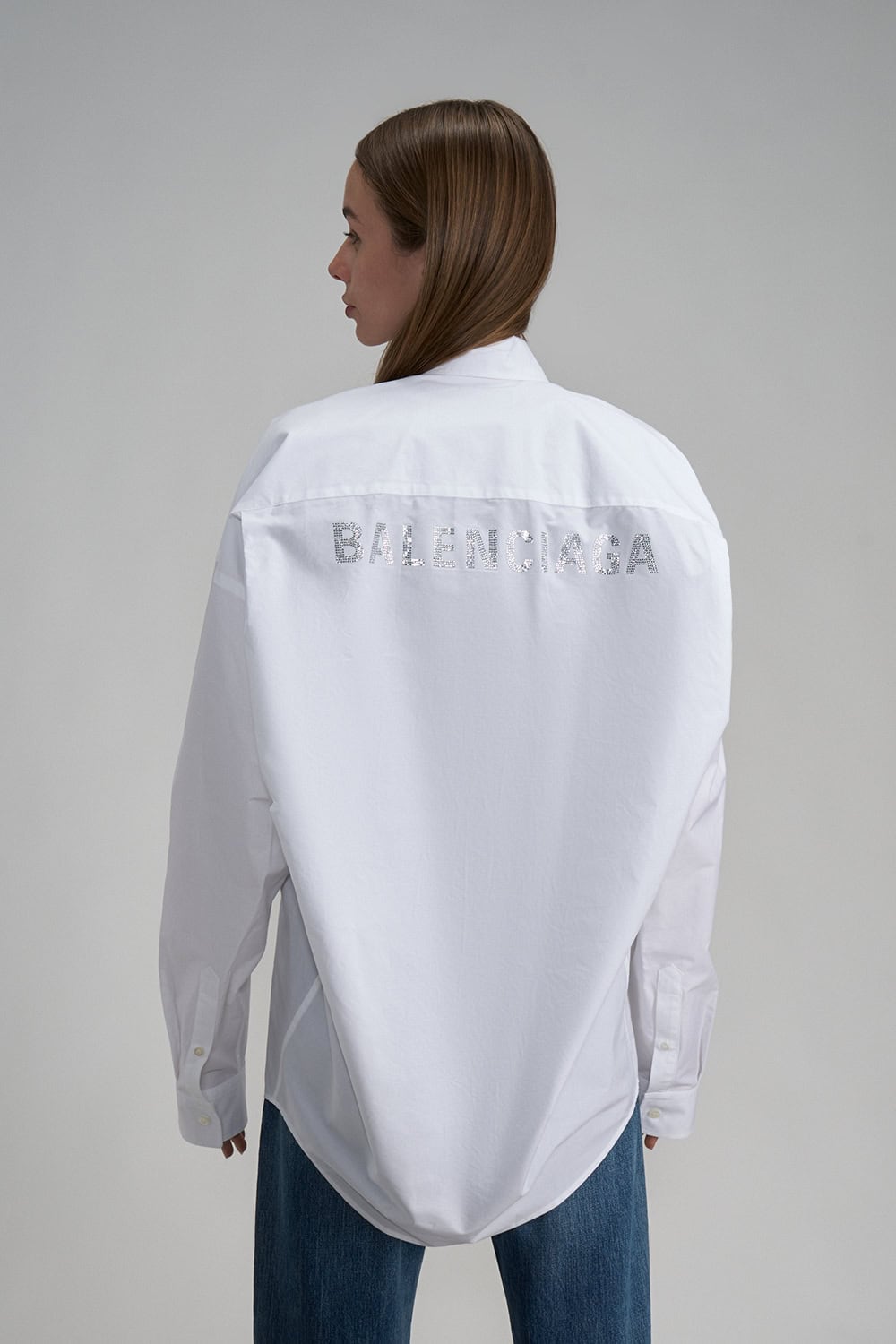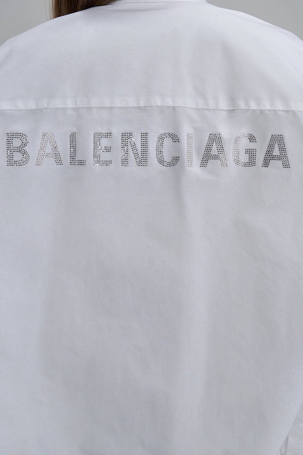 White oversized shirt with shiny logo on the back