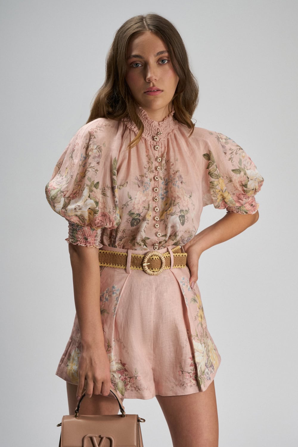 • Removable belt with raffia buckle